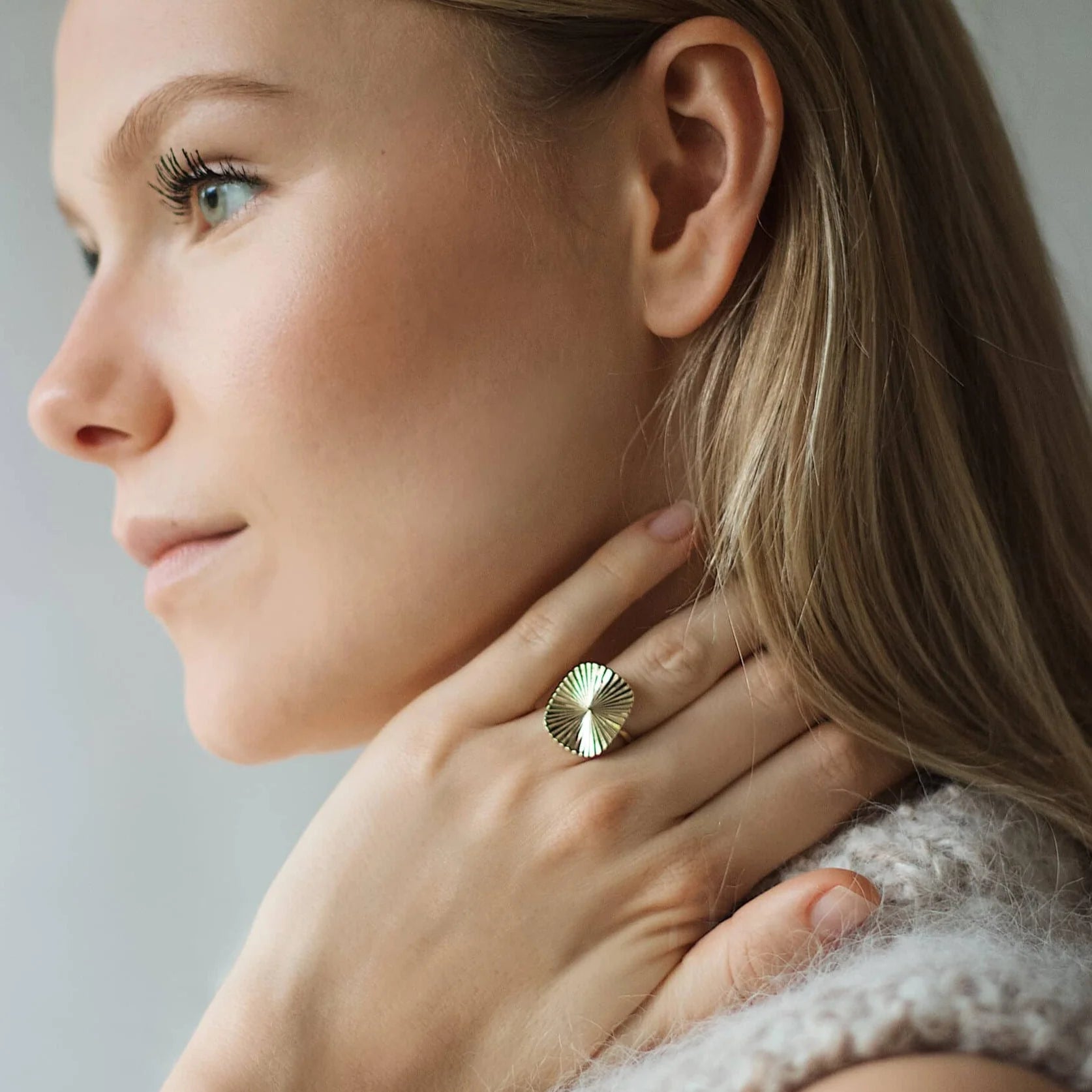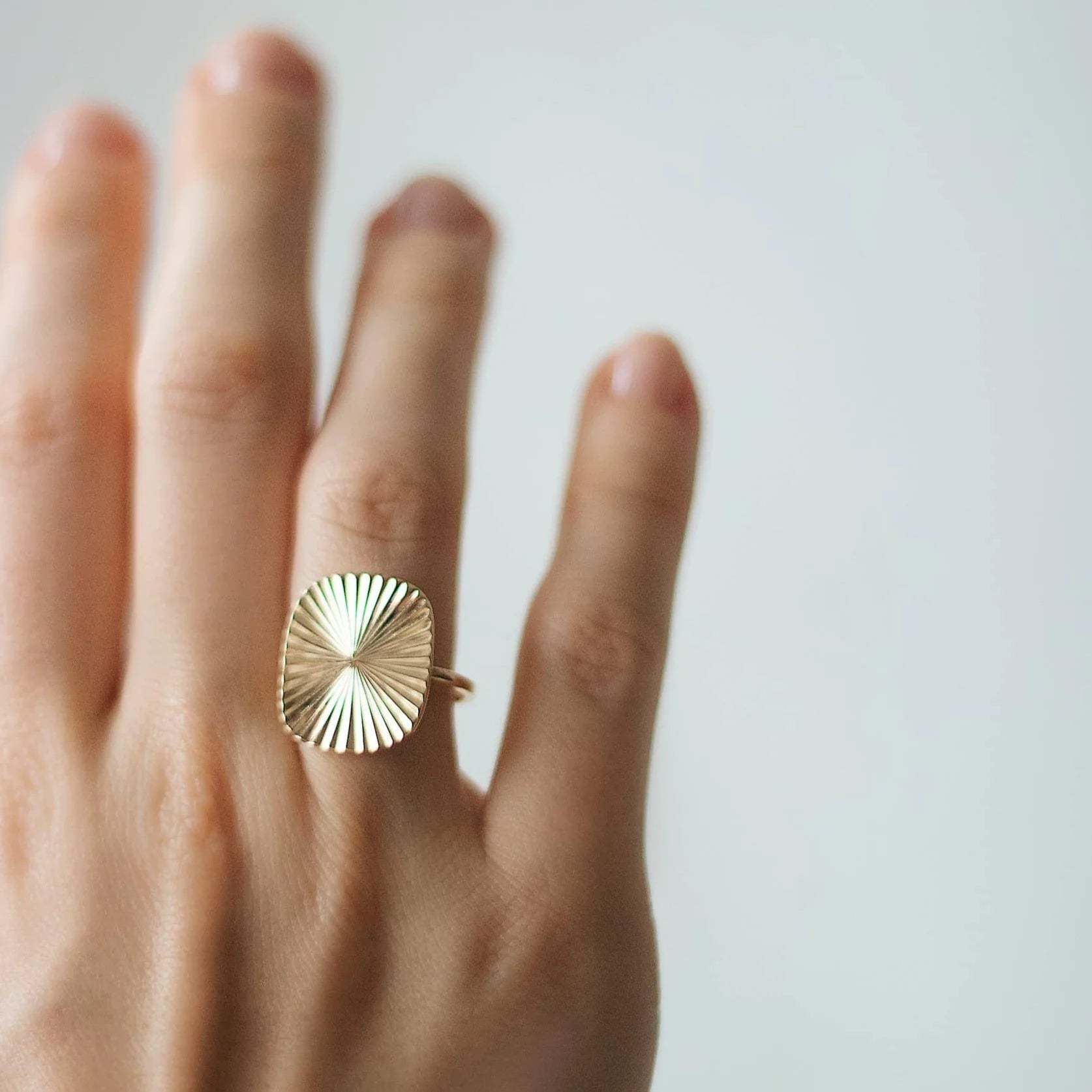 Sunlight ringen er designet af Emma Lindebæk sommeren 2020, med inspiration af solens stråler som bragte lys i en corona fyldt tid.